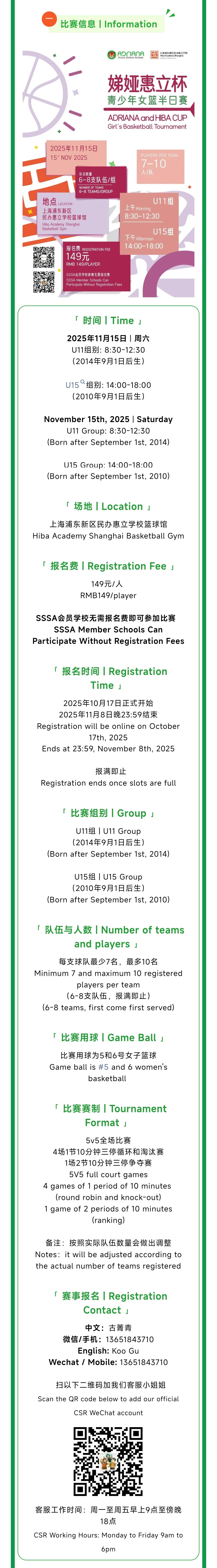 11月15日娣娅惠立杯 ADRIANA and HIBA CUP | 青少年女篮半日赛 Girls Half-day Tournament